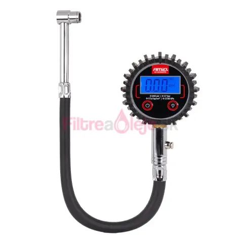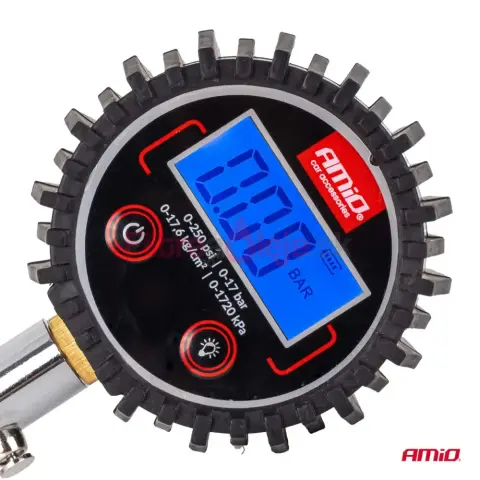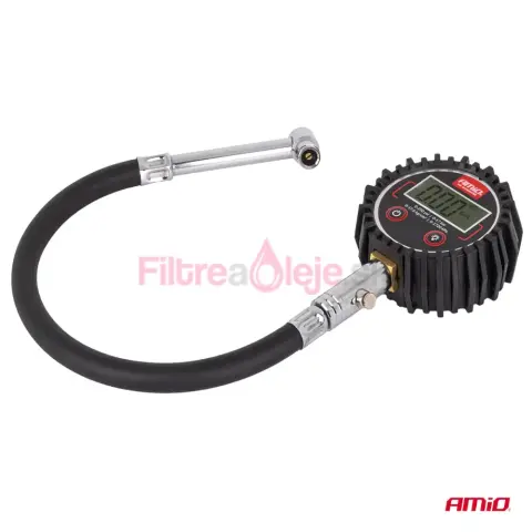 AMIO digitálny manometer je presné a odolné meradlo tlaku pneumatík navrhnuté pre profesionálne použitie v dielňach aj pre bežných vodičov. Kombinuje flexibilnú 30 cm hadicu, čitateľný LCD displej a integrovaný vypúšťací ventil pre jednoduché skorigovanie tlaku bez odpojenia prístroja.