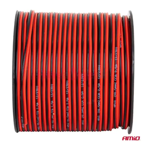 AMIO Dvojvodičový vodič reproduktora CCA 2x0,5 mm² 100 m 2,5 A je ekonomické a praktické riešenie pre základné audio inštalácie. Vodič vyrobený v technológii CCA (Copper Clad Aluminium) kombinuje nízku hmotnosť a nižšie náklady pri zachovaní prijateľných elektrických vlastností pre systémy s menším výkonom. Priečnik 2x0,5 mm², navinutý na cievke 100 m, je ideálny pre domáce ozvučenie, jednoduché PA inštalácie, car-audio alebo prenosné sety s nízkym odberom.