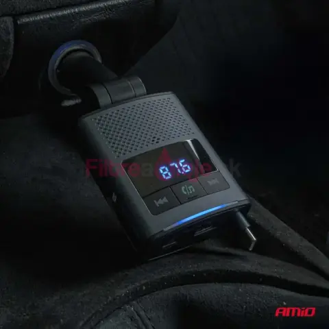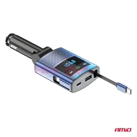 AMIO FM transmitter je multifunkčný FM vysielač s Bluetooth modulom a praktickým riešením nabíjania – okrem portov USB-A a USB-C ponúka aj integrovaný výsuvný USB-C kábel, takže môžete nabíjať moderné zariadenia bez hľadania ďalších káblov. Umožňuje prehrávanie hudby v aute a zároveň slúži ako hands-free na bezpečné telefonovanie počas jazdy.