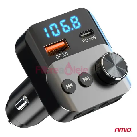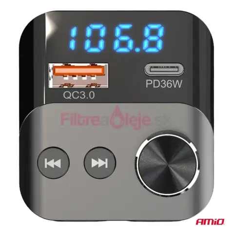 AMIO FM transmitter je multifunkčný FM vysielač určený pre vozidlá bez zabudovaného Bluetooth. Zariadenie sa bezdrôtovo spojí s telefónom cez Bluetooth a následne prenáša zvuk do autorádia cez FM frekvenciu. Vďaka tomu môžeš v aute pohodlne počúvať hudbu zo smartfónu alebo USB kľúča a zároveň využívať zostavu hlasitého odpočúvania na telefonovanie.
