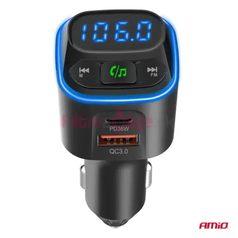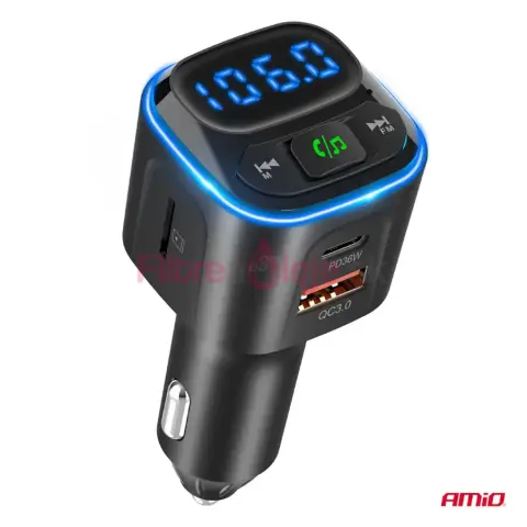 AMIO FM transmitter 1×USB-A 2×USB-C 12 V / 24 V je pokročilý FM vysielač s Bluetooth, ktorý premení klasické autorádio bez modernej konektivity na multimediálne centrum do auta. Umožňuje bezdrôtové prehrávanie hudby cez Bluetooth, podporuje microSD karty, prehrávanie z USB kľúča a vďaka trom nabíjacím portom dokáže súčasne napájať viac zariadení. Vstavaný mikrofón a režim hands-free zabezpečia pohodlné a bezpečnejšie telefonovanie počas jazdy.