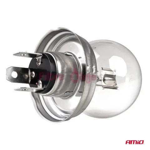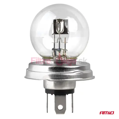 AMIO R2 (P45t) je klasická halogénová žiarovka s dvoma vláknami určená pre automobilové reflektory. Kombinácia 45 W (diaľkové svetlá) a 40 W (tlmené svetlá) zabezpečuje silný, stabilný svetelný kužeľ v rôznych jazdných podmienkach. Štandardná pätica P45t a homologácia ECE R37 (E8) zaručujú jednoduchú montáž a legálne použitie na cestách.