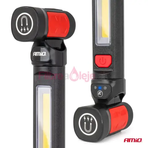 Praktická a výkonná inšpekčná baterka AMIO s COB LED 10 W a integrovanou nabíjateľnou batériou 4400 mAh — ideálna pre servis, dielňu, kontrolu technického stavu vozidla, kempovanie alebo ako núdzové osvetlenie. Kombinuje plošné svetlo COB pre rovnomerné osvetlenie väčšej plochy so štandardným reflektorovým lúčom pre detailnú prácu.