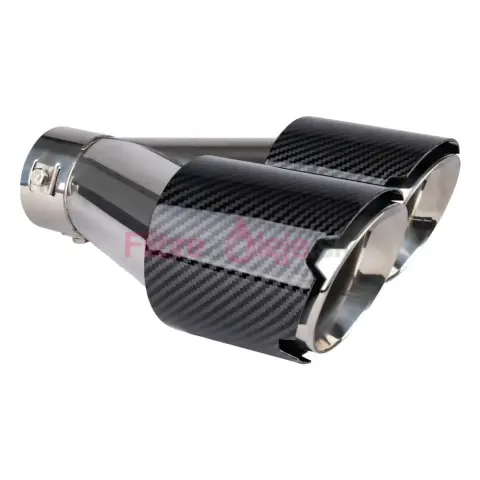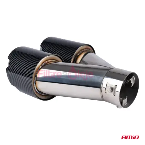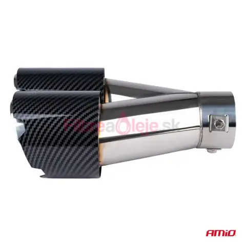 AMIO dvojitá pravá koncovka výfuku prináša vozidlu výrazný športový a prémiový vzhľad. Kombinácia nerezovej ocele so carbon dekorom zabezpečuje odolnosť proti korózii aj atraktívny dizajn. Vďaka univerzálnemu upínaciemu systému je montáž rýchla — buď pomocou svorky bez zvárania, alebo pevnejšie priskrutkovaním či privarením.