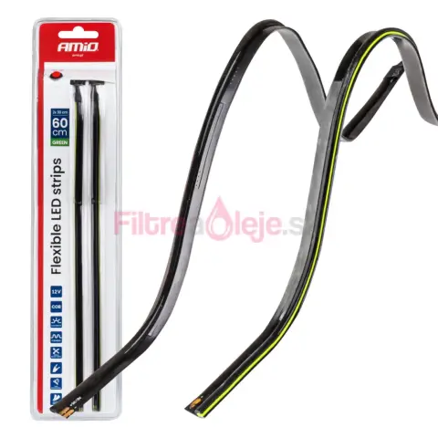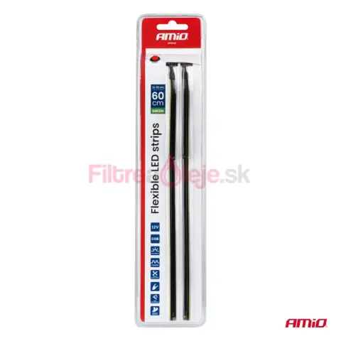 AMIO LED pásiky sú flexibilné pásiky určené pre bočnú montáž v automobiloch a iných vozidlách s napájaním 12 V. Sada obsahuje dva pásiky po 30 cm vyžiarené intenzívnym zeleným svetlom, ideálnym pre dekoračné osvetlenie, prahy alebo bočné doplnky. Vďaka pružnej konštrukcii sa pásiky ľahko prispôsobia tvaru montážnej plochy a zabudovaná funkcia „try me“ umožňuje rýchlu predajnú prezentáciu.