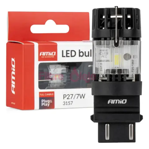 AMIO LumiTec 3157 (P27/7W) 12V FULL CANBUS je moderná LED žiarovka zo série LumiTec, určená ako výkonná náhrada za klasické dvojvláknové žiarovky 3157 / P27/7W. Technológia FULL CANBUS zabezpečuje kompatibilitu s väčšinou 12V systémov a pomáha eliminovať hlásenia o „spálenej žiarovke“ na palubnej doske. Žiarovka vyžaruje intenzívne, čisté biele svetlo, ktoré zlepšuje viditeľnosť a dodáva osvetleniu vozidla modernejší vzhľad.