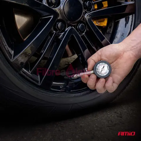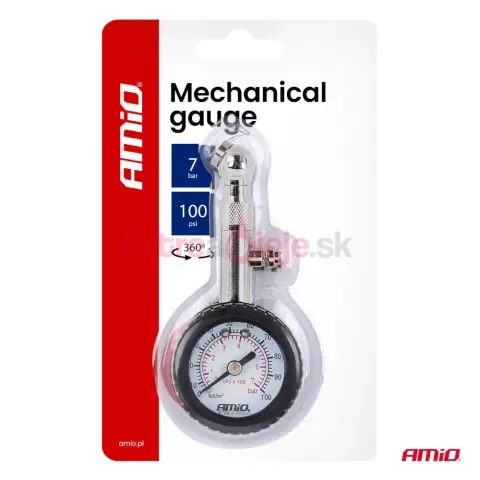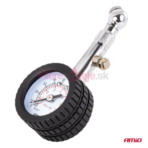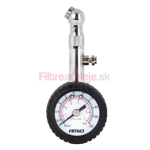 AMIO Manometer 7 bar je kompaktný a spoľahlivý mechanický tlakomer určený na rýchlu kontrolu tlaku v pneumatikách osobných a ľahkých úžitkových vozidiel. Vďaka otočnej hlavici a integrovanému vypúšťaciemu ventilu uľahčuje meranie a okamžité doladenie tlaku priamo pri kolese — bez potreby batérií alebo zložitej elektroniky.