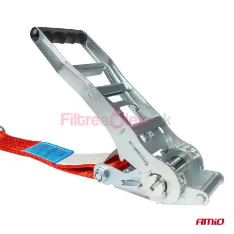 AMIO Napínacie zariadenie mechanizmu dopravníkového pásu ERGO 0,4 m 50 mm 5T je profesionálny napínač (ERGO) navrhnutý pre pevné a efektívne zabezpečenie nákladu. Vďaka väčšiemu a odolnejšiemu napínaču s dlhšou pákou umožňuje dosiahnuť vyššie hodnoty napnutia (STF = 500 daN) než bežné 50 mm napínače, takže náklad je pevnejšie pritlačený k podlahe a účinnejšie znehybnený — ideálne pre profesionálne použitie v doprave, logistike a stavebníctve.