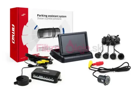 AMIO TFT02 GOLD je kompletný parkovací asistent navrhnutý pre maximálne pohodlie a bezpečnosť pri cúvaní. Sada kombinuje 4 čierne senzory, kameru HD-308-LED s pomocným osvetlením, 4,3" TFT displej a centrálnu jednotku s integrovaným video mixérom. Kamera a senzory sa automaticky aktivujú pri zaradení spiatočky, displej zobrazuje obraz z kamery spolu s digitálnym indikátorom vzdialenosti — ideálne riešenie pre náročných používateľov, ktorí chcú spoľahlivý vizuálny aj zvukový feedback pri parkovaní.