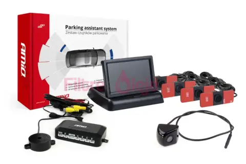 AMIO TFT02 + HD-310-LED je kompletný parkovací asistenčný systém, ktorý kombinuje 4 čierne vnútorné senzory, zadnú kameru HD-310-LED a 4,3" TFT displej s integrovaným video mixérom. Systém sa automaticky aktivuje pri zaradení spiatočky, zobrazí obraz z kamery spolu s digitálnym indikátorom vzdialenosti a poskytne akustické varovanie — ideálne riešenie pre bezpečné cúvanie v mestskom aj pracovnom prostredí.