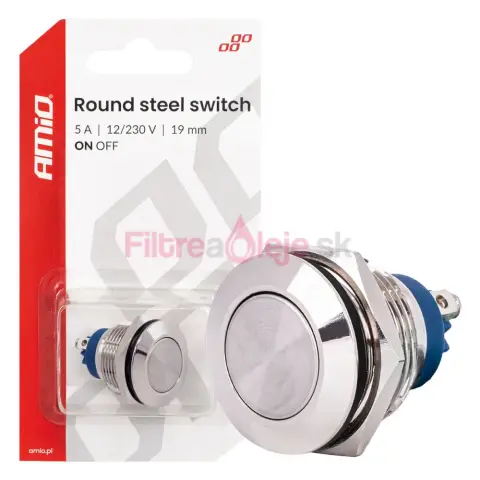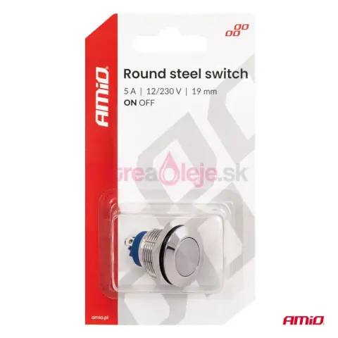 AMIO oceľový vypínač 19 mm ON/OFF – spoľahlivý, elegantný a odolný prepínač pre každé zariadenie.