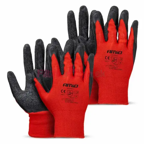 AMIO polyesterové pracovné rukavice s latexovým povrchom sú odolné a univerzálne rukavice určené na práce, kde je dôležitý pevný úchop, komfort a dobrá výdrž. Sú vyrobené z pružnej polyesterovej pleteniny a v dlani sú potiahnuté kvalitným latexom, ktorý zlepšuje grip a zároveň zvyšuje odolnosť proti opotrebeniu. Skvelo sa hodia do suchého aj mierne vlhkého prostredia.