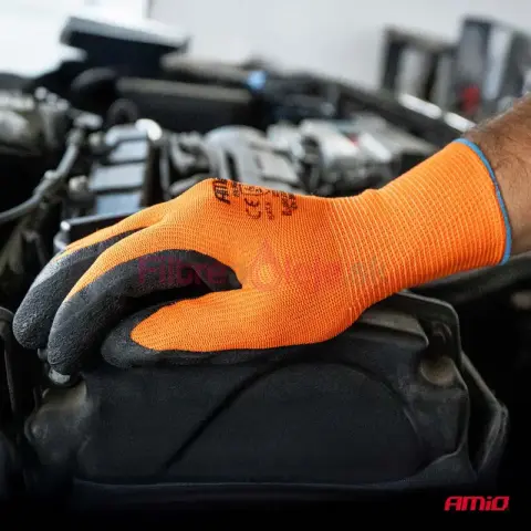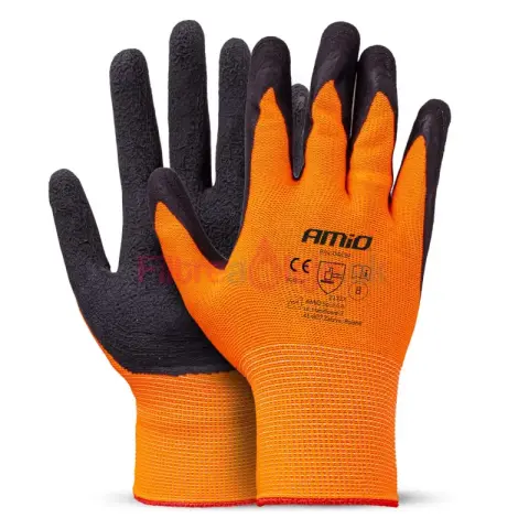 AMIO polyesterové pracovné rukavice s povrchom z latexpvej peny (latex foam) sú pohodlné a spoľahlivé rukavice určené na práce, kde je dôležitý pevný úchop, tlmenie a komfort aj pri dlhšom nosení. Základ tvorí pružná a priedušná polyesterová pletenina, ktorá sa dobre prispôsobí ruke. Povrch z latexovej peny poskytuje výbornú priľnavosť, a to najmä pri manipulácii v mierne vlhkom prostredí alebo na hladších povrchoch.