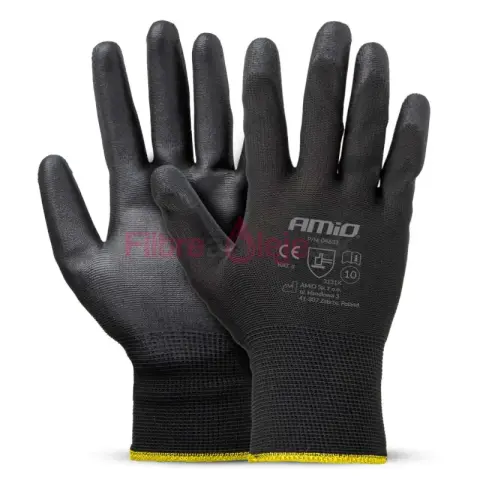 AMIO PU ochranné rukavice sú kvalitné pracovné rukavice určené na presné práce, kde je dôležitý pevný úchop, cit v prstoch a komfort. Sú vyrobené z pružnej a priedušnej pleteniny a v dlani potiahnuté odolnou polyuretánovou (PU) vrstvou, ktorá zvyšuje priľnavosť a zároveň pomáha chrániť ruky pri každodennej práci.