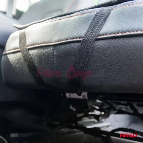 Umiestnite poťah na sedadlo, pretiahnite elastické upevňovacie pásy okolo operadla a spodnej časti sedadla a pevne ich upevnite. Skontrolujte, či bedrová opierka sedí v správnej výške podľa vašej anatómie. Počas montáže upravte pozíciu tak, aby poťah neprerušoval bezpečnostné pásy ani prístup k ovládacím prvkom.