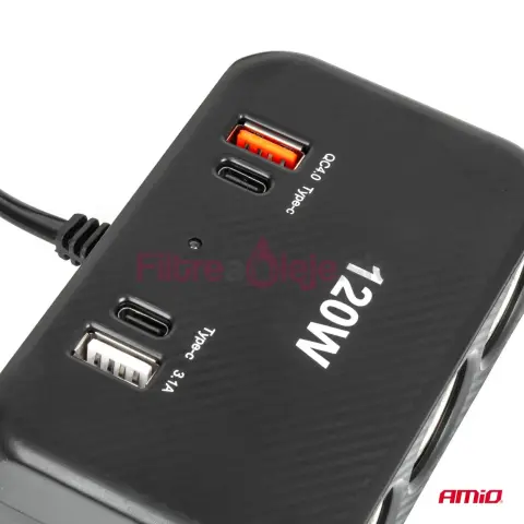 AMIO predlžovacia zásuvka je kompaktný a praktický napájací adaptér pre vozidlá, ktorý kombinuje 2× USB-A porty a 1× USB-C s podporou Quick Charge 4.0 spolu s napájaním z autozapaľovača. S dĺžkou kábla 80 cm a maximálnym výkonom 120 W umožňuje pohodlné nabíjanie smartfónov, tabletov, navigácií alebo napájanie drobnej elektroniky v aute, kamperu či nákladnom vozidle.
