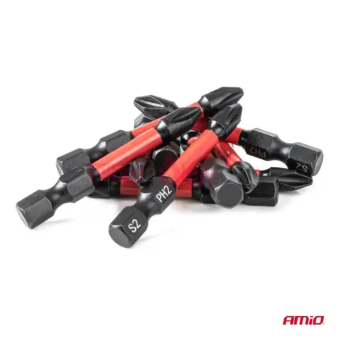 AMIO bity PH2 Torsion 50 mm sú profesionálne skrutkovacie bity určené na intenzívne montážne a servisné práce. Vďaka torsnej (skrútnej) zóne lepšie tlmia nárazové preťaženie, čím pomáhajú chrániť hrot pred poškodením a predlžujú životnosť bitu – ideálne aj pri práci s rázovými uťahovačmi.