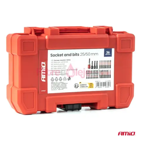 AMIO sada redukcií a bitov 25/50 mm je univerzálna 36-dielna súprava určená na montážne, servisné a dielenské práce. Obsahuje bity v dĺžkach 25 mm a 50 mm a doplnkové redukcie/násadky, vďaka čomu pokryje široké spektrum skrutkovacích úkonov pri práci v aute, dielni aj domácnosti.