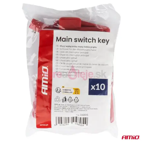 Praktický set 10 kusov univerzálnych kľúčov k odpojovaču batérie / vypínaču masy (tzv. „hebel prúdu“) je ideálny do dielní, servisov, vozových parkov aj pre bežných používateľov, ktorí chcú mať vždy poruke náhradný kľúč. Kľúče sú vyrobené z odolného materiálu, vhodného do náročnejších podmienok prevádzky v autách, strojoch či technike.