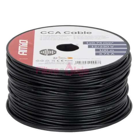 AMIO jednožilový vodič (1×0,75 mm²) vyrobený v technológii CCA (Copper Clad Aluminium) je ekonomické a flexibilné riešenie pre nízkonapäťové inštalácie s malým odberom prúdu. Navinutý na rolke 100 m poskytuje dostatočnú dĺžku pre rozvody reprosystémov, audio inštalácie v autách a menšie napájacie okruhy. Vďaka pružnej izolácii sa ľahko inštaluje aj v ťažšie prístupných priestoroch.