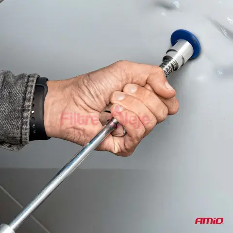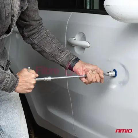 AMIO PDR vyklepávač je profesionálny zotrvačný (inerčný) kladivový nástroj určený na rýchle a presné odstraňovanie preliačin metódou PDR (Paintless Dent Repair). Umožňuje opravy karosérií bez nutnosti špachtľovania alebo lakovania, vďaka čomu šetrí čas aj náklady a zachováva pôvodný lak.