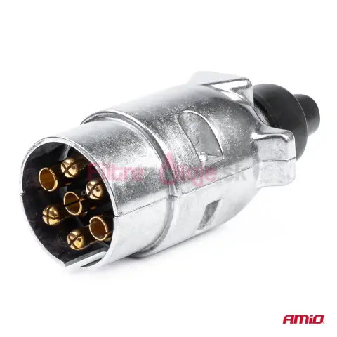 AMIO 7-pin hliníková zástrčka je robustná a spoľahlivá vidlica pre pripojenie prívesov a ťažných zariadení. Pevné hliníkové púzdro zaručuje zvýšenú odolnosť proti nárazom a korózii, dlhú životnosť a profesionálny vzhľad pri používaní v osobných automobiloch, dodávkach, valníkoch, prívesoch či karavanoch. Zástrčka je konštruovaná pre 12 V aj 24 V elektrické sústavy a vyhovuje štandardnému zapojeniu 7 pinov.