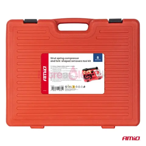 AMIO sada zveráka a vidlicových sťahovákov pružín je profesionálne náradie určené na bezpečnú demontáž a montáž pružín zavesenia v osobných aj úžitkových vozidlách. Umožňuje presné a kontrolované stláčanie pružín a zároveň uľahčuje ich vyberanie z tlmičových vzpier, čím pomáha minimalizovať riziko poškodenia komponentov zavesenia aj riziko pri práci.