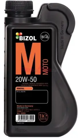 BIZOL Moto 20W-50 je celoročný minerálny olej pre 4-taktné motory motocyklov. Vďaka pokročenej aditivácii poskytuje vynikajúcu ochranu proti opotrebeniu a excelentnú tepelnú odolnosť pri dlhšej záťaži a vo vyšších teplotách. Vhodný na použitie aj v motore so spojkou v olejovej náplni (mokrá spojka) podľa JASO MA-2.