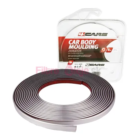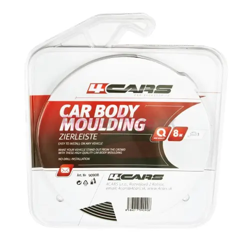 Nalepovacie bočné lišty v rozmere: 12mm x 2mm x 8m, chrómový design. Univerzálne použitie. Pred nalepením je potrebné zvolené časti karosérie dôkladne vyčistiť a odmastniť. Lišty odstrihnite v požadovanom rozmere. Teplota pri montáži nesmie klesnúť pod 18 °C. 24 hod. po montáži nečistite vozidlo v autoumývačke. Návod na použitie: 1. Pred inštaláciou dôkladne vyčistite povrch a odstráňte prípadne zvyšky vosku alebo oleja. 2. Upravte dĺžku podľa potreby a nakreslite čiaru na karosériu auta. Pri zrezávaní dĺžky musíte dbať na to, aby lišta nebránila otváraniu dvier (je nutné nechať aspoň 1 cm odstup alebo vyrežte uhol na začiatočnom konci lišty). 3. Uhlové zárezy na každom konci lišty vykonávajte nožom alebo brúsnym kotúčom, aby ste tak vylepšili vzhľad. 4. Odstráňte ochrannú fóliu a nalepte lištu pozdĺž nakreslenej čiary, zabráňte ušpineniu gumy a nechytajte ju prstami. 5. Zatlačte rovnomerne na lištu, aby bola pevne uchytená. 6. Teplota by mala byť viac ako 18°C. Ak je nižšia zohrejte gumový povrch horúcim vzduchom, aby ste dosiahli dôkladné uchytenie. 7. Nasledujúcich 24 hodín po inštalácii neumývajte auto automatickou umývačkou.