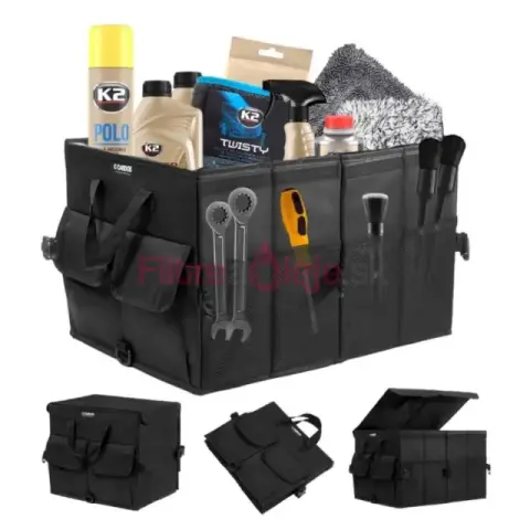 CARDOS TRUNK ORGANIZER je pevný a praktický organizer do kufra navrhnutý na udržanie poriadku počas jazdy. Pomôže vám bezpečne usporiadať nákupy, náradie, čistiace prostriedky či výbavu na cesty — všetko zostane na svojom mieste aj pri ostrejších manévroch.