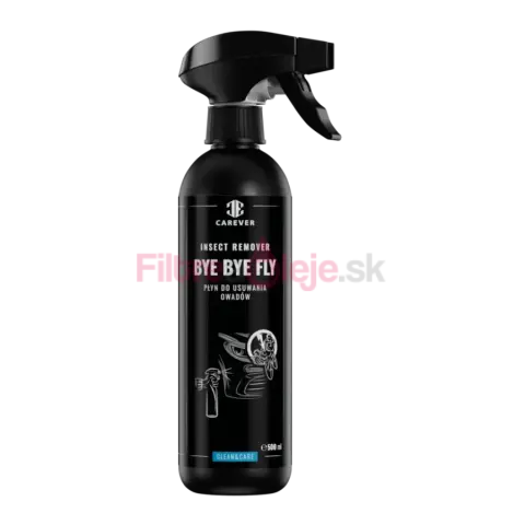 CAREVER BYE BYE FLY je účinný odstraňovač hmyzu určený na bezkontaktné použitie pred hlavným umývaním. Inovatívna formula rýchlo narúša a rozpúšťa zvyšky hmyzu, takže ich odstránite bez drhnutia a s menším rizikom vzniku mikroškrabancov. Pravidelné používanie zároveň pomáha predchádzať trvalým škvrnám a poškodeniu laku spôsobenému organickými zvyškami.