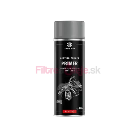 CAREVER PRIMER GREY je sivý akrylový základný náter v spreji, určený na rýchlu prípravu povrchu pred lakovaním. Vytvára tenkú základnú vrstvu, ktorá zlepšuje priľnavosť následných vrstiev a pomáha dosiahnuť rovnomernejší výsledok pri aplikácii vrchného laku. Vďaka tryske typu FAN ponúka široký a rovnomerný nástrek, podobný lakovacej pištoli – ideálne aj pre práce bez kompresora.