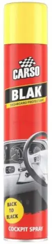 CARSO BLACK COCKPIT SPRAY je pripravený sprej na čistenie a oživenie vnútorných plastových, vinylových a gumových povrchov vozidla. Rýchlo odstraňuje prach, mierne nečistoty a zvyšky mastnoty a zároveň dodáva povrchom hlboký čierny lesk bez lepkavého zvyšku.