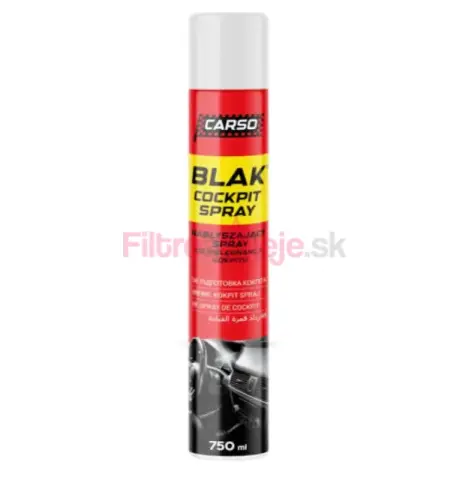 CARSO BLACK COCKPIT SPRAY je pripravený sprej na čistenie a oživenie vnútorných plastových, vinylových a gumových povrchov vozidla. Rýchlo odstraňuje prach, mierne nečistoty a zvyšky mastnoty a zároveň dodáva povrchom hlboký čierny lesk bez lepkavého zvyšku.