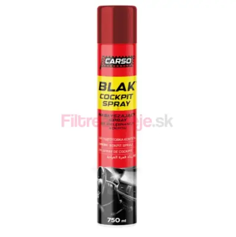 CARSO BLACK COCKPIT SPRAY je pripravený sprej na čistenie a oživenie vnútorných plastových, vinylových a gumových povrchov vozidla. Rýchlo odstraňuje prach, mierne nečistoty a zvyšky mastnoty a zároveň dodáva povrchom hlboký čierny lesk bez lepkavého zvyšku.