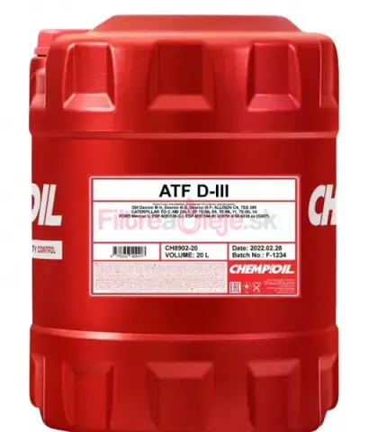 CHEMPIOIL ATF DEXRON III je univerzálna celoročná, syntetická-založená ATF vyvinutá pre automatické prevodovky, hydrodynamické meniče, hydraulické servoriadenie, hydraulické spojky a ďalšie hydraulické zariadenia vrátane náročných podmienok v nákladnej a off-road technike. Produkt bol navrhnutý v súlade s požiadavkami skupín GM a Ford a poskytuje hladký chod prevodovky, minimalizuje opotrebenie a prispieva k dlhšej životnosti a úspore paliva.