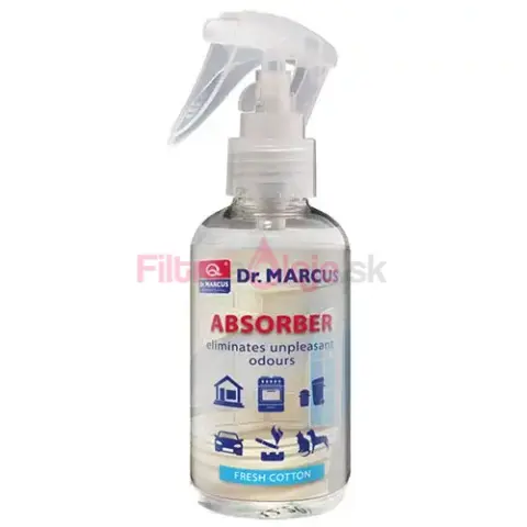 DR. MARCUS ABSORBER je praktický sprejový neutralizátor pachov určený do domácnosti, kancelárie aj auta. Špeciálne zloženie nemaskuje zápach len vôňou, ale pomáha ho neutralizovať, takže vzduch pôsobí čistejšie a sviežejšie. Jemná, svieža vôňa pripomína čerstvo vypratú bielizeň, vďaka čomu je vhodný takmer do každého interiéru.