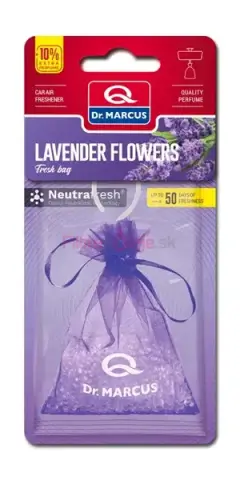 DR. MARCUS FRESH BAG - Vrecúšková vôňa Levanduľa je elegantný závesný osviežovač vzduchu vo forme textilného vrecúška naplneného vonnými polymérovými guličkami. Jemná levanduľová aróma pôsobí upokojujúco a relaxačne – ideálna na spríjemnenie atmosféry v aute, spálni, šatníku či kúpeľni.
