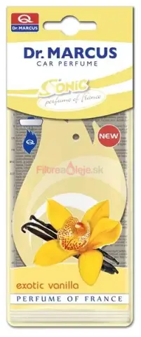 DR. MARCUS SONIC - Závesný osviežovač vzduchu s vôňou vanilky je klasický celulózový prívesok na zrkadlo s moderným tvarom, napustený kvalitnou parfémovou kompozíciou. Vôňa Vanilla / Vanilka je jemná, sladká a krémová – vytvára hrejivú, útulnú atmosféru v interiéri auta aj menších priestoroch.