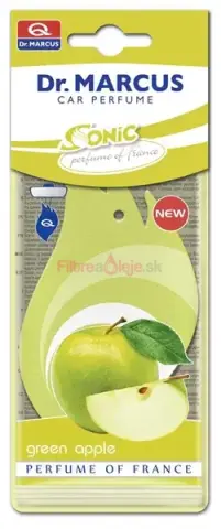 DR. MARCUS SONIC - Závesný osviežovač vzduchu s vôňou zeleného jablka je klasický celulózový prívesok na zrkadlo s moderným tvarom, napustený kvalitnou parfémovou kompozíciou. Vôňa Green Apple / Zelené jablko je svieža, mierne sladká a ovocná – pripomína čerstvo nakrájané jablká a dodá interiéru energickú a príjemne čistú atmosféru.