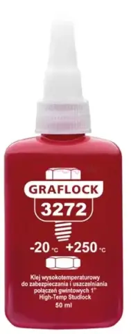 GRAFLOCK 3243 je jednosložkové anaeróbne lepidlo strednej pevnosti, navrhnuté na zajištenie závitov a menších skrutiek proti uvoľneniu vibráciami. Ideálne pre spojovacie prvky s priemerom 6–20 mm (1/4"–3/4"), uzamyká a zároveň utěsňuje závitové spoje — matice, skrutky a svorníky. Produkt sa vyznačuje zvýšenou odolnosťou voči oleju, čo zvyšuje spoľahlivosť v olejnatých prostrediach.