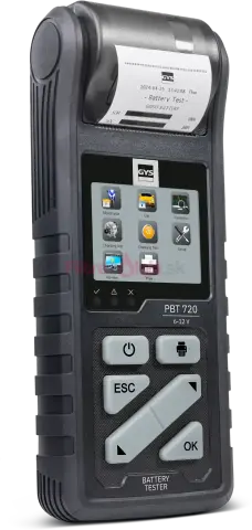 GYS PBT720 je profesionálny tester batérií navrhnutý pre autoservisy a dielne — ponúka ultrapresné meranie, rýchly výsledok do < 1 s, intuitívny farebný 3,2" LCD displej a vstavanú termotlačiareň pre okamžitú tlač testovacích protokolov (dátum/čas, menovka).