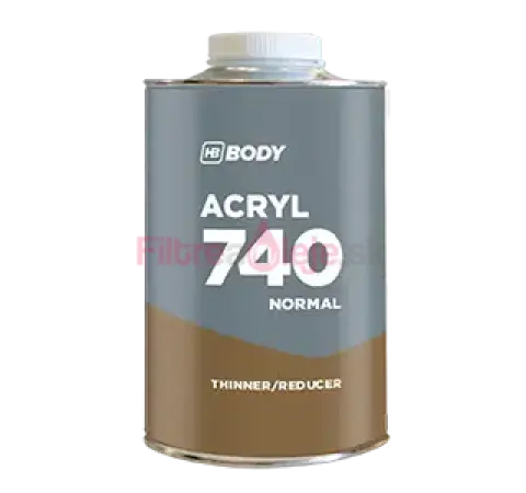 HB BODY 740 akrylové riedidlo NORMAL je špeciálne riedidlo určené na riedenie akrylátových vyrovnávacích náterových látok s polyuretánovými živicami a dvojzložkových 2K akrylátových farieb. Zabezpečuje výbornú rozlievateľnosť, hladký povrch bez závojov a nerovností a pritom nepredlžuje dobu sušenia. Vhodné je aj na čistenie náradia po aplikácii akrylátových materiálov.