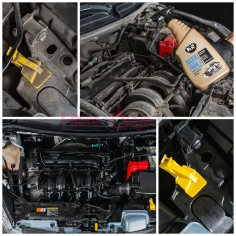 Pretrep balenie a nastriekaj K2 AKRA na znečistené povrchy motora a okolia.