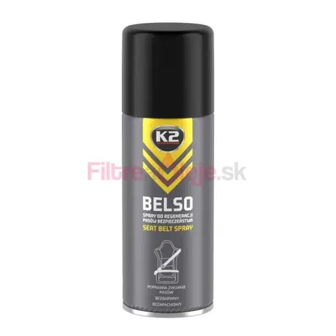 K2 BELSO je špecializovaný sprej na regeneráciu a údržbu bezpečnostných pásov, ktorý obnovuje povrchovú vrstvu pásu, znižuje trenie a vracia pásom plynulý chod bez nutnej mechanickej výmeny napínača. Produkt zlepšuje funkčnosť pásov, zabraňuje zadrhávaniu a navyše chráni tkaninu pred UV žiarením a statickou príťažlivosťou.