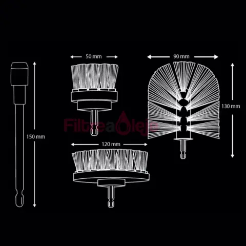 Nasaďte rýchlozáber 1/4" do vŕtačky alebo skrutkovačky. Pripojte požadovanú kefu (prípadne použite predĺženie 150 mm).