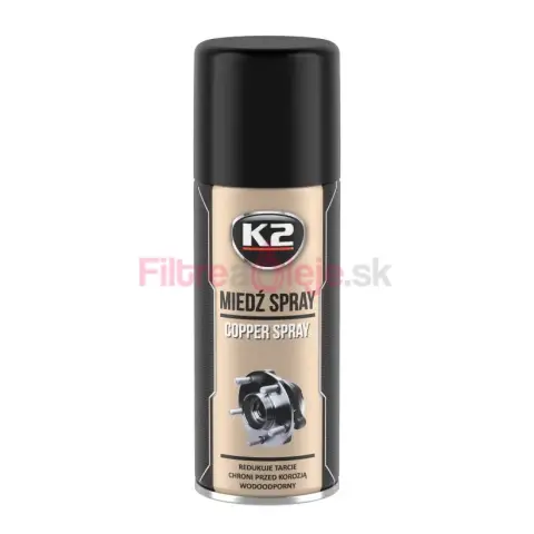 K2 COPPER SPRAY je vysokoteplotný, rýchloschnúci medený mazací sprej určený na ochranu a mazanie kovových dielov. Znižuje trenie, zabraňuje zadieraniu, treniu „na sucho“, traskaniu a nepríjemnému škrípaniu a zároveň chráni kovové spoje pred koróziou a vplyvmi počasia.