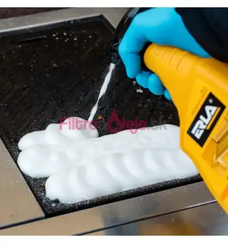 ERLA GRILLEX je profesionálny prípravok pripravený na použitie na čistenie grilov, rúr, roštov, panvíc, hrncov, udiarenských komôr a krbových skiel. Účinne odstraňuje pripálený tuk, pripečené zvyšky jedla a špinu vznikajúcu dymom. Vďaka aktívnej pene preniká do nečistôt, účinne ich rozpúšťa a umožňuje ich odstránenie bez nutnosti drhnutia.