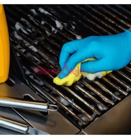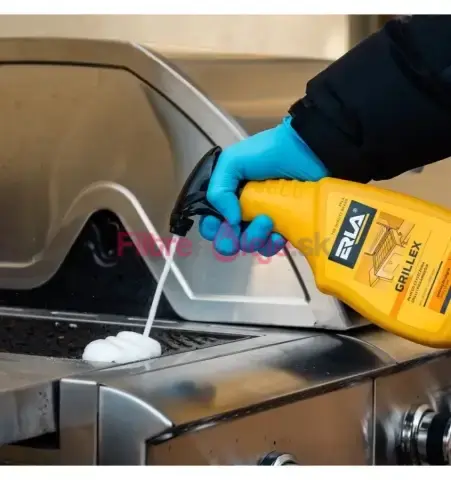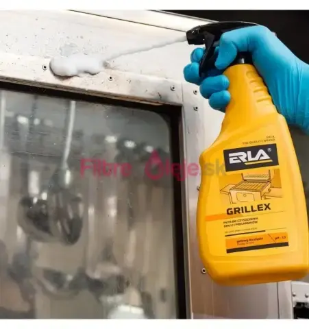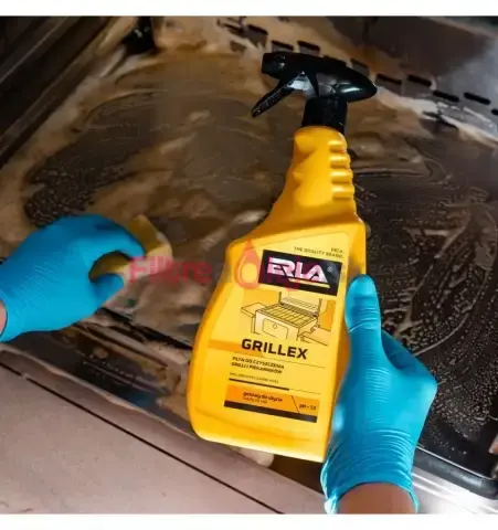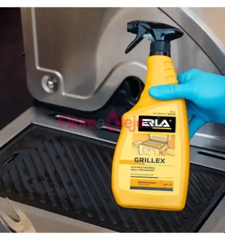 ERLA GRILLEX je profesionálny prípravok pripravený na použitie na čistenie grilov, rúr, roštov, panvíc, hrncov, udiarenských komôr a krbových skiel. Účinne odstraňuje pripálený tuk, pripečené zvyšky jedla a špinu vznikajúcu dymom. Vďaka aktívnej pene preniká do nečistôt, účinne ich rozpúšťa a umožňuje ich odstránenie bez nutnosti drhnutia.