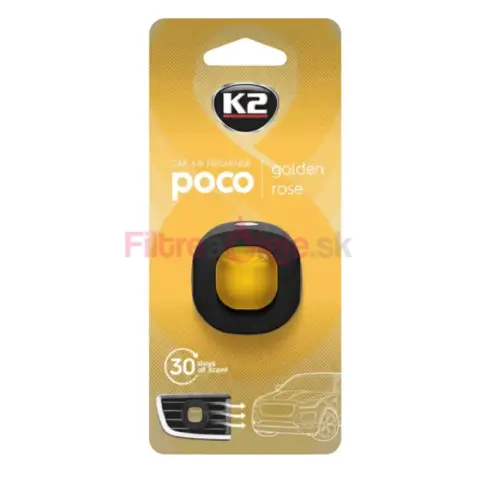 Ak hľadáte osviežovač, ktorý dodá vášmu autu nadčasovú eleganciu a sviežosť, K2 POCO GOLDEN ROSE je ideálna voľba — harmonická kombinácia bergamotu a ruže vytvára príjemnú, jemne luxusnú atmosféru počas každej jazdy.